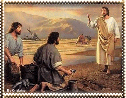 No dia seguinte, João está parado, junto com dois dos seus discípulos. Novamente, quando Jesus se aproxima, ele diz: “Eis o Cordeiro de Deus!” Com isto, estes dois discípulos de João, o Batizador, seguem a Jesus. Um deles é André e o outro é, evidentemente, a própria pessoa que registrou estas coisas, que também se chama João. Este João, segundo tudo indica, também é primo de Jesus, pelo que parece sendo filho da irmã de Maria, Salomé.